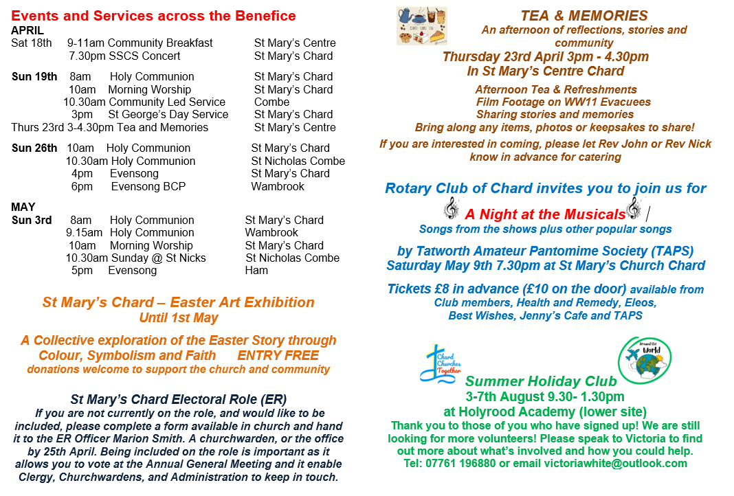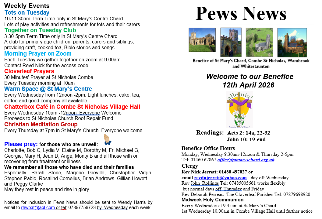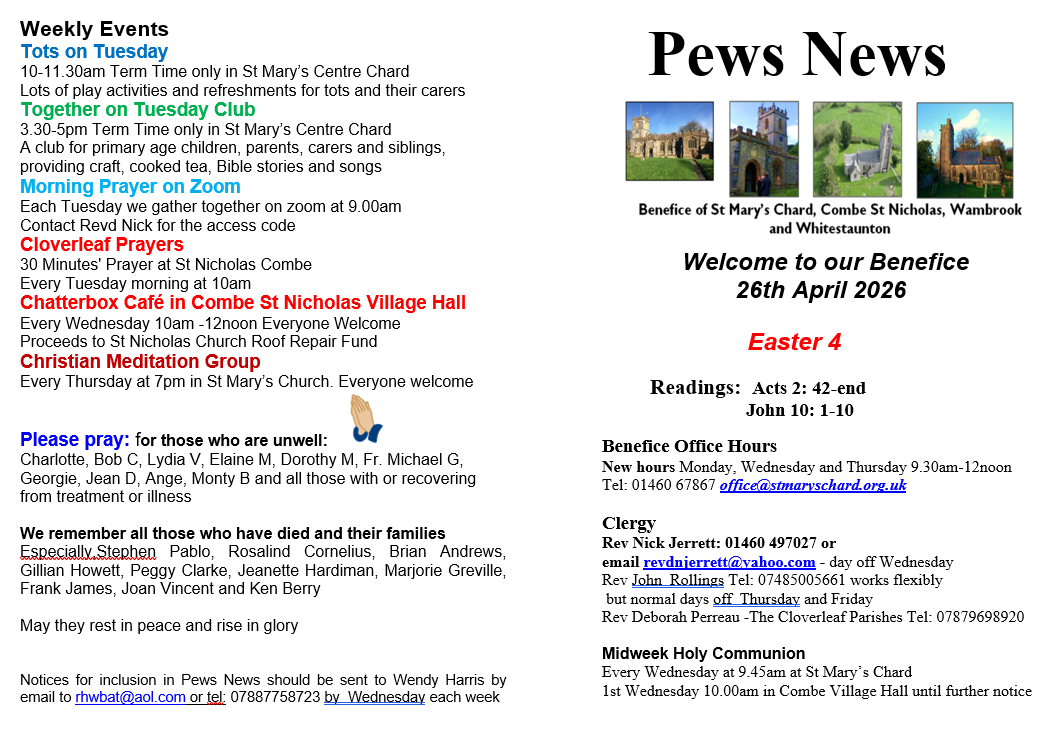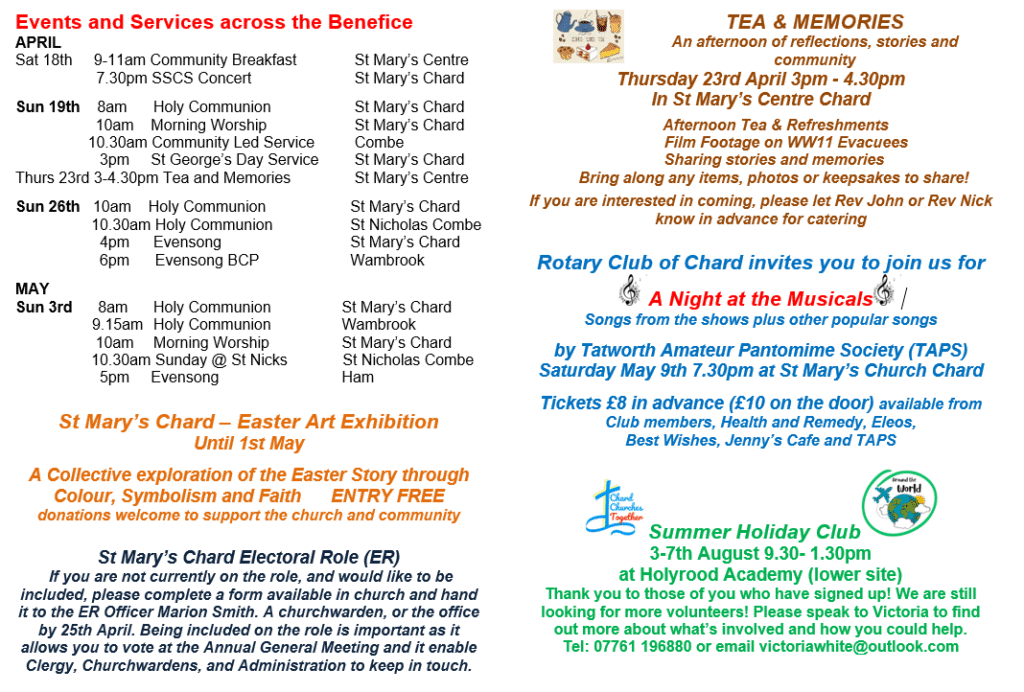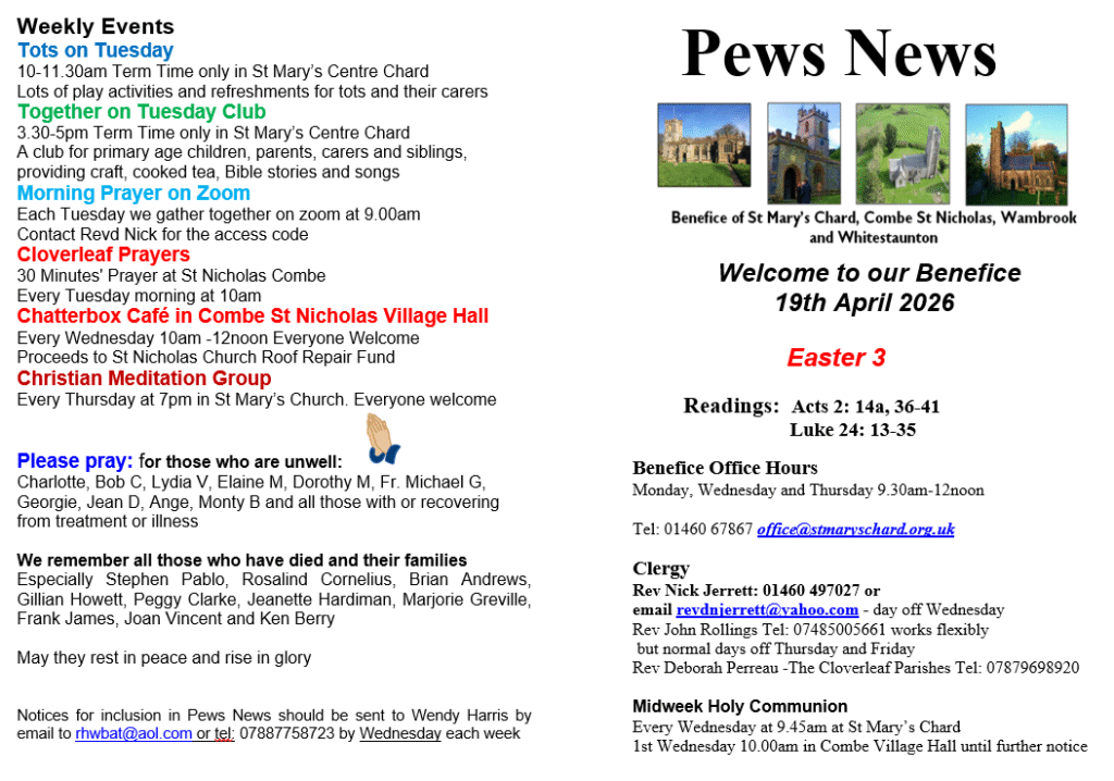 Please make a note of the World Day of Prayer – prepared by the women of Nigeria – Friday 6th March 2pm at Chard Baptist Church.